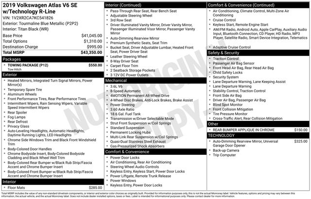 You can't buy the wrong vehicle at Valley Pre-Owned! Check out the rest of the great features on this car. Towing Package, 20" Twin 5-Spoke Alloy Wheels, 3.60 Axle Ratio, 3rd row seats: split-bench, 4-Wheel Disc Brakes, 8 Speakers, ABS brakes, Active Blind Spot Monitor, Air Conditioning, Alloy wheels, AM/FM radio: SiriusXM, Auto-dimming Rear-View mirror, Automatic temperature control, Brake assist, Bumpers: body-color, Compass, Delay-off headlights, Driver door bin, Driver vanity mirror, Dual front impact airbags, Dual front side impact airbags, Electronic Stability Control, Emergency communication system: VW Car-Net services (capabilities require enrollment or subscription), Exterior Parking Camera Rear, Forward collision: FCW w/Autonomous Emergency Braking mitigation, Four wheel independent suspension, Front anti-roll bar, Front Bucket Seats, Front Center Armrest, Front dual zone A/C, Front fog lights, Front reading lights, Heated Comfort Front Bucket Seats, Heated door mirrors, Heated front seats, Illuminated entry, Low tire pressure warning, Occupant sensing airbag, Outside temperature display, Overhead airbag, Overhead console, Panic alarm, Passenger door bin, Passenger vanity mirror, Power door mirrors, Power driver seat, Power Liftgate, Power steering, Power windows, Radio data system, Radio: Composition Media 8.0" Touchscreen, Rain sensing wipers, Rear air conditioning, Rear anti-roll bar, Rear reading lights, Rear seat center armrest, Rear window defroster, Rear window wiper, Remote CD player, Remote keyless entry, Roof rack: rails only, Security system, Speed control, Speed-sensing steering, Split folding rear seat, Spoiler, Standard Suspension, Steering wheel mounted audio controls, Tachometer, Telescoping steering wheel, Tilt steering wheel, Traction control, Trip computer, Turn signal indicator mirrors, V-Tex Leatherette Seating Surfaces, and Variably intermittent wipers.